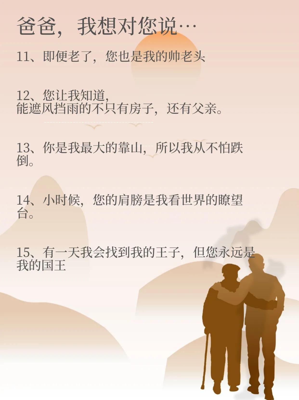 12、您让我知道,能遮风挡雨的不只有房子,还有父亲。